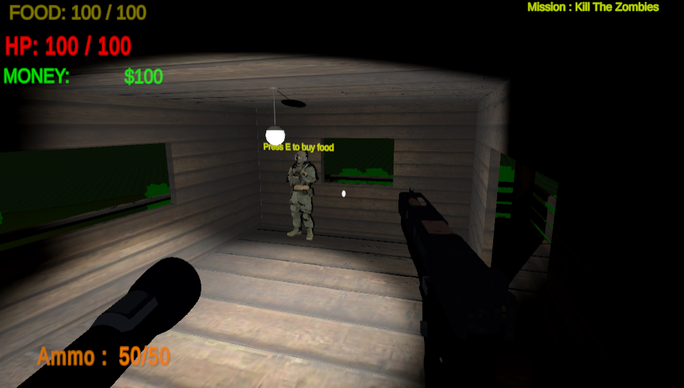 You're stranded on an island and must survive. You can kill zombies to earn money for food.
